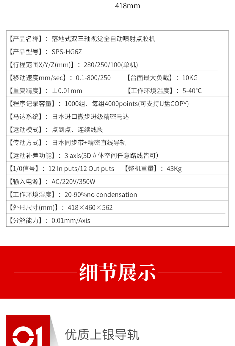 > 雙三軸落地式視覺點膠機SPS-HG6Z